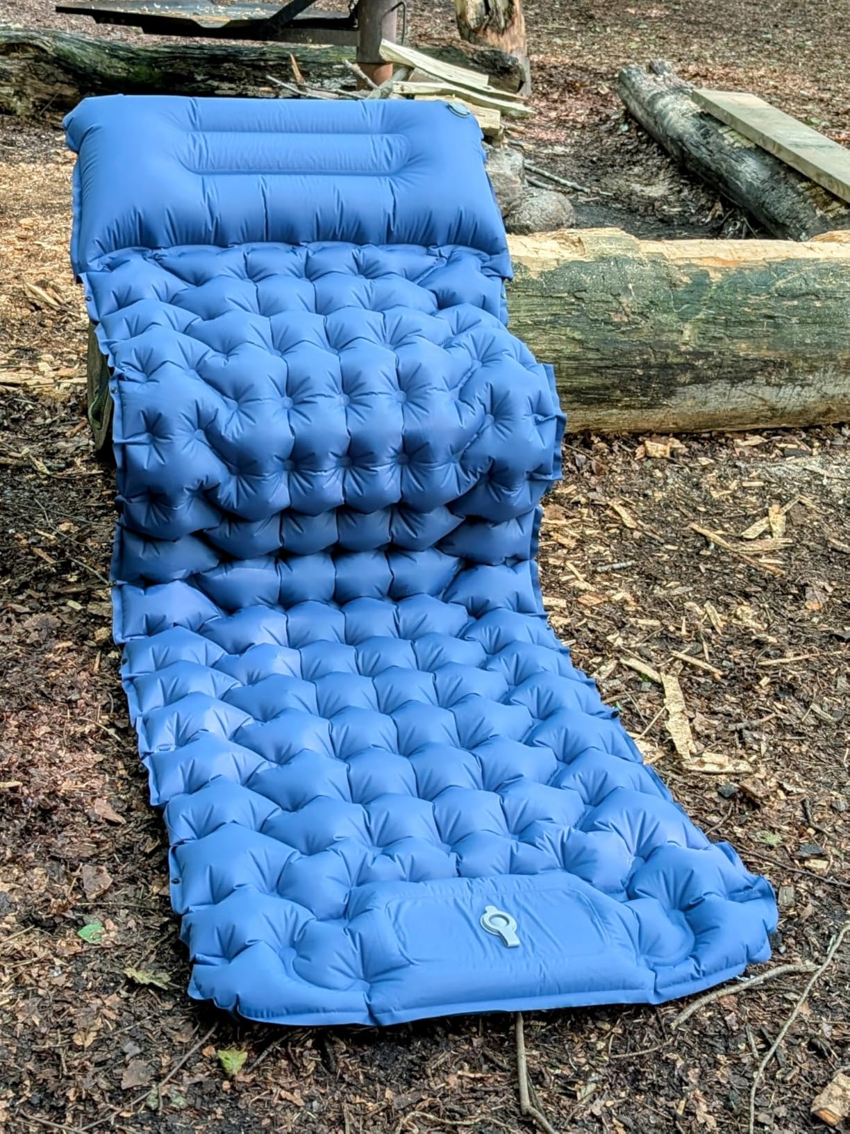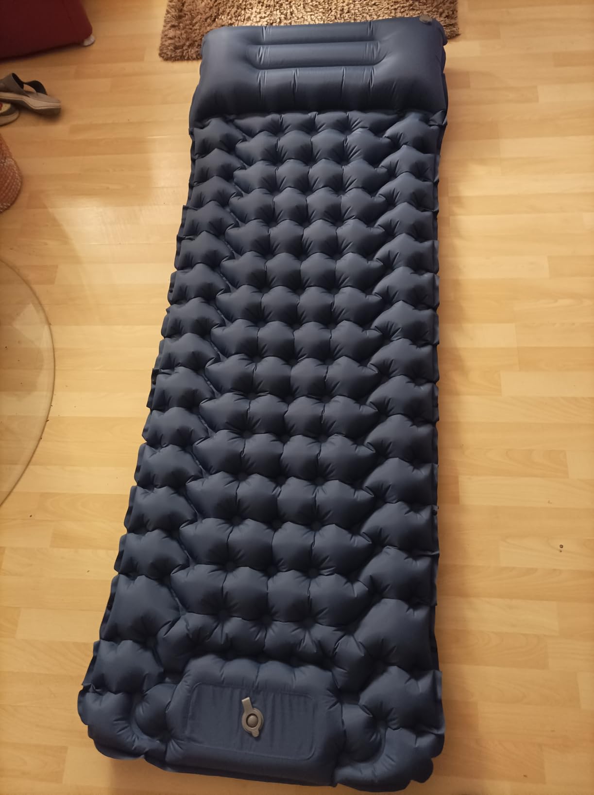 Während andere noch pusten, liegst du schon entspannt – mit unserer Isomatte mit integrierter Fußpumpe!